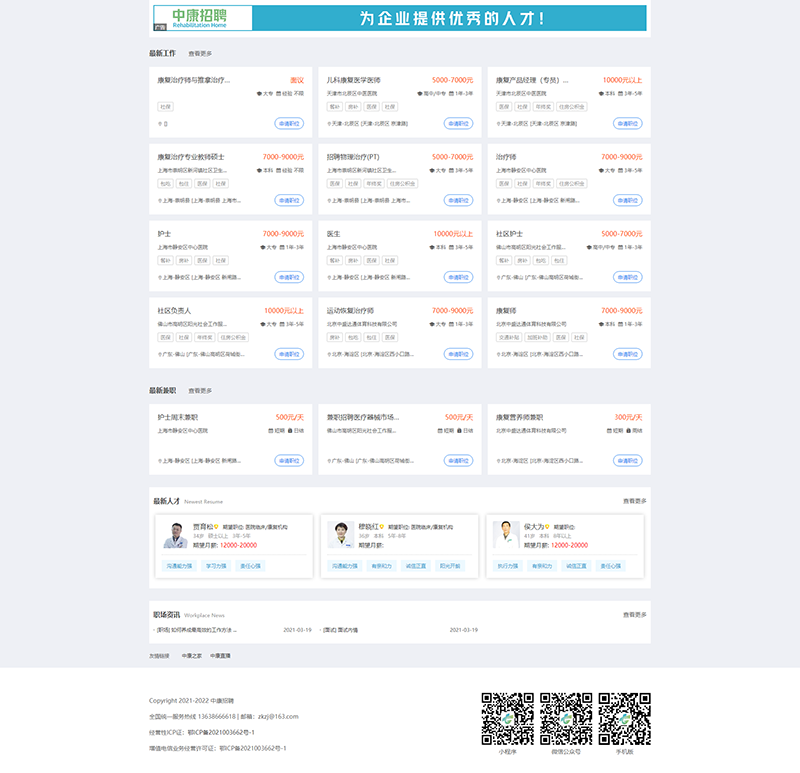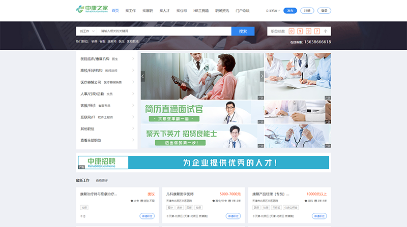 中康之家招聘網為醫生,康復師,客服,體能教練,銷售提供準確權威的招聘信息,可以讓求職者與企業高效對接,求職找工作就上中康之家....