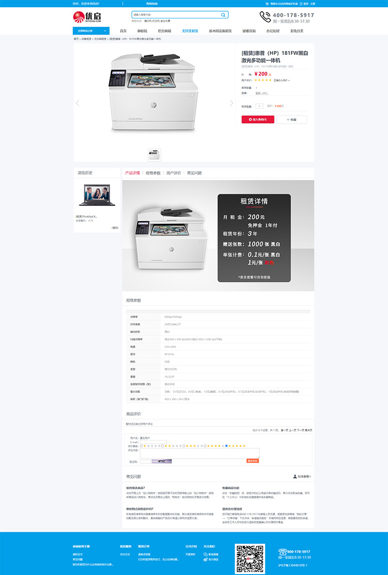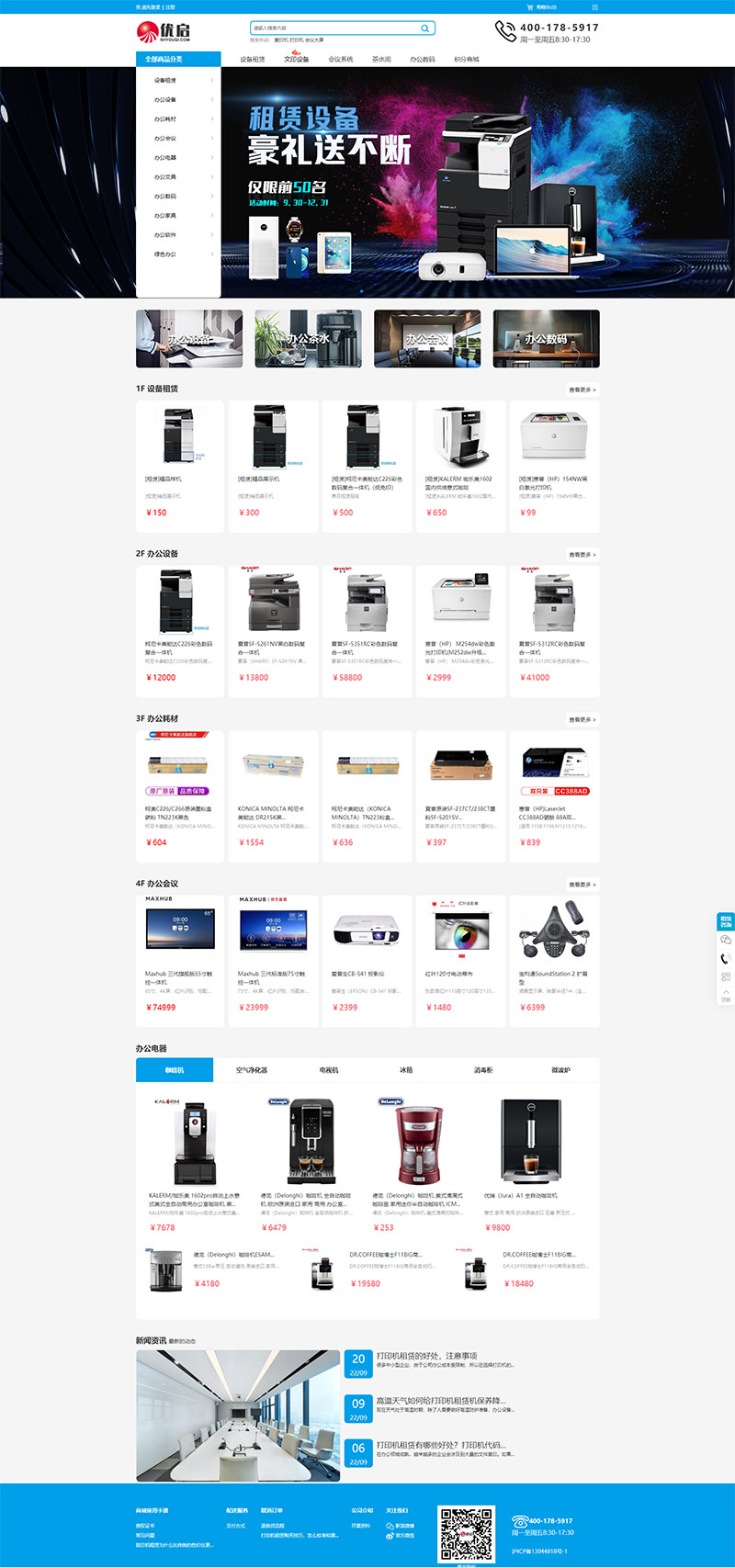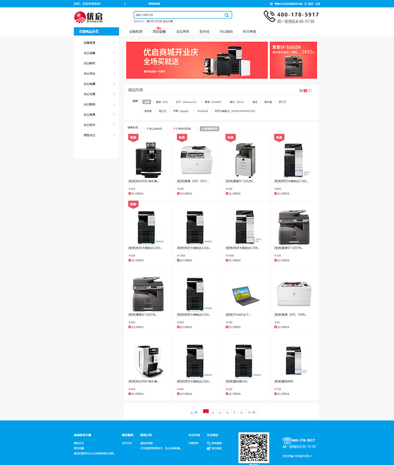 優啟商城是辦公設備租賃銷售平臺,為企業提供打印機復印機租賃,掃描儀投影儀租賃,咖啡機,電腦及其它辦公用品銷售租賃,通過信用租讓企業租設備更方便更放心....