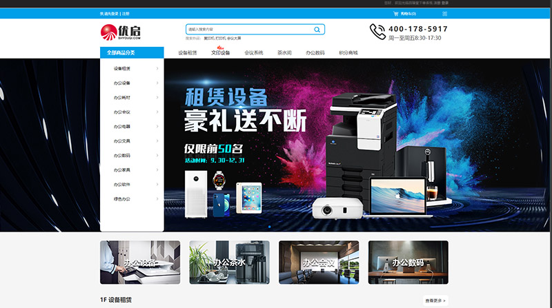 優啟商城是辦公設備租賃銷售平臺,為企業提供打印機復印機租賃,掃描儀投影儀租賃,咖啡機,電腦及其它辦公用品銷售租賃,通過信用租讓企業租設備更方便更放心.